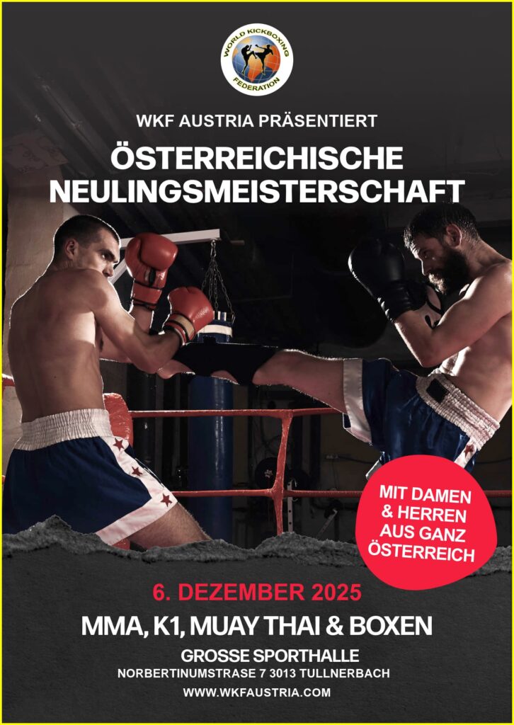 Die „Österreichische Neulingsmeisterschaft“ und dazu wie jedes Jahr der „Österreichische Jugend-Cup“ findet wie im Terminplan ersichtlich am 6. Dezember statt. Wiegen und ärztliche Untersuchung ist ausnahmslos am Freitag, 5. Dezember von 16h – 20h.